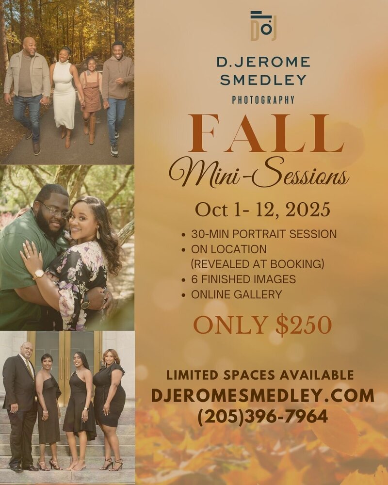 I'm D Jerome Smedley. As a professional family and children's photographer for over 20+ years, I know what it takes to get a family photo you will treasure. I have a lot of experience getting the most difficult little one or the most stubborn teenager to cooperate in a session. I've photographed many beautiful families all around Alabama and I want you to have the best memory of your family in the most fun way possible.